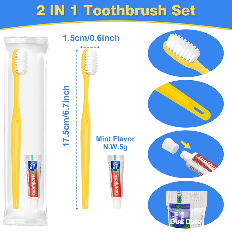 - Versatile Use: These toothbrush and toothpaste kits are versatile and adaptable for use as personal disposable care package supplies, ideal for making large quantities of hygiene kits for a variety of occasions such as hotels, airlines, beauty salons and more