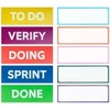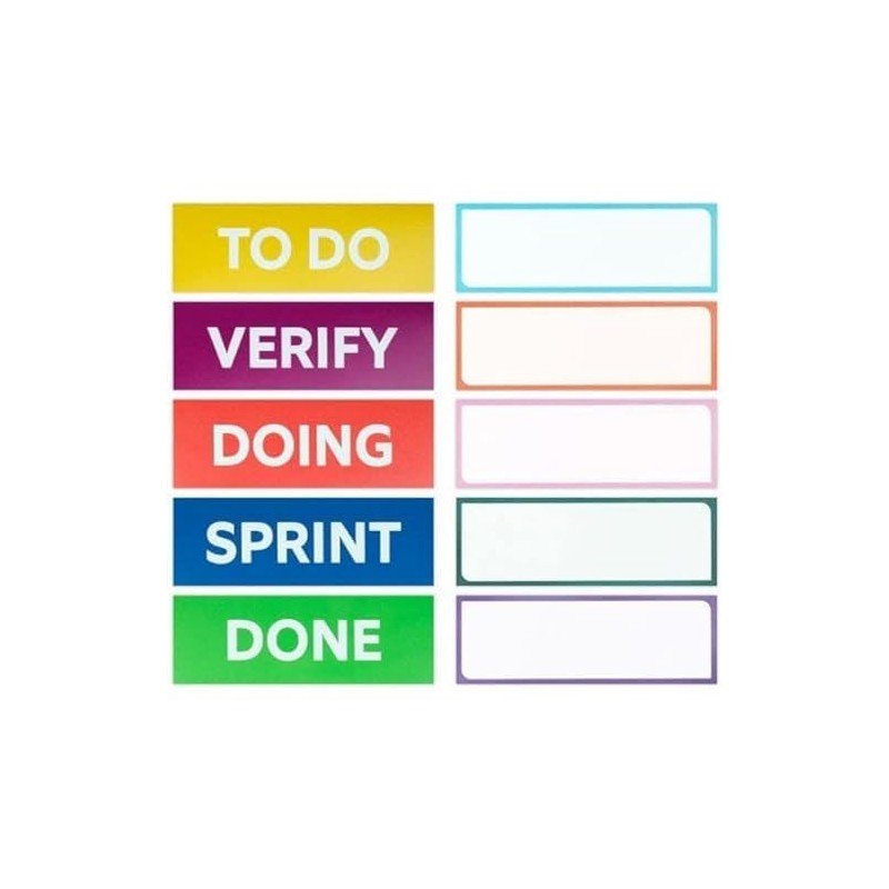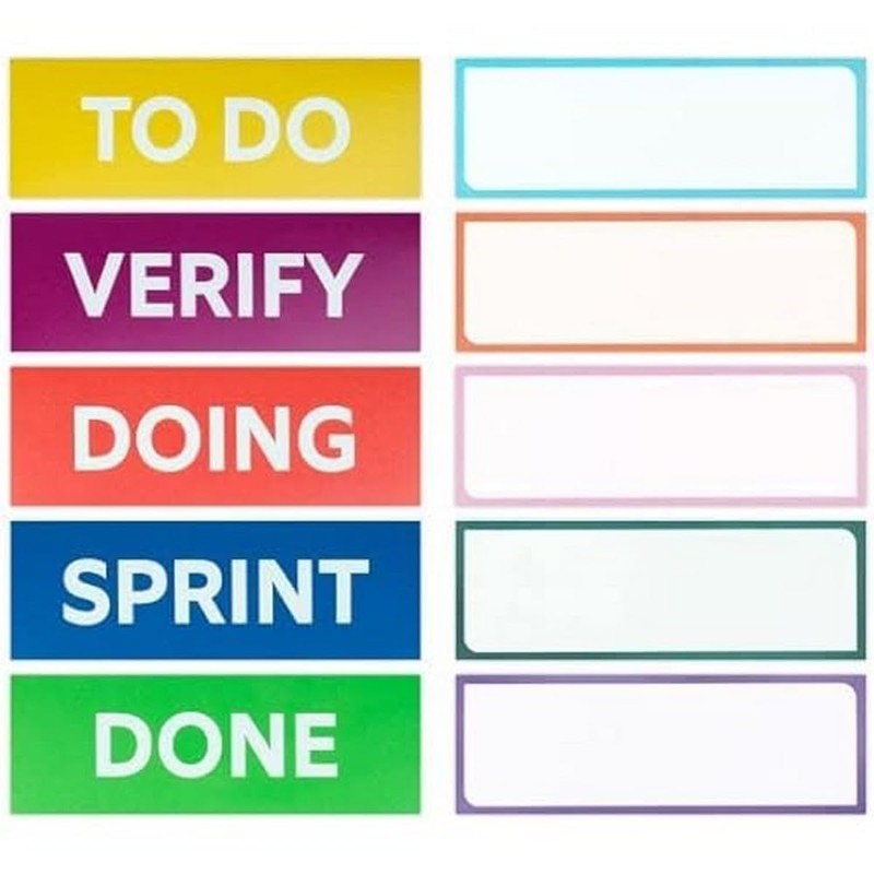 - Easy to adjust. This package contains 5 different printed headings each for a different stage of the scrum process: sprint, to-do, do, review, done, and 5 blank cards to create your own columns.