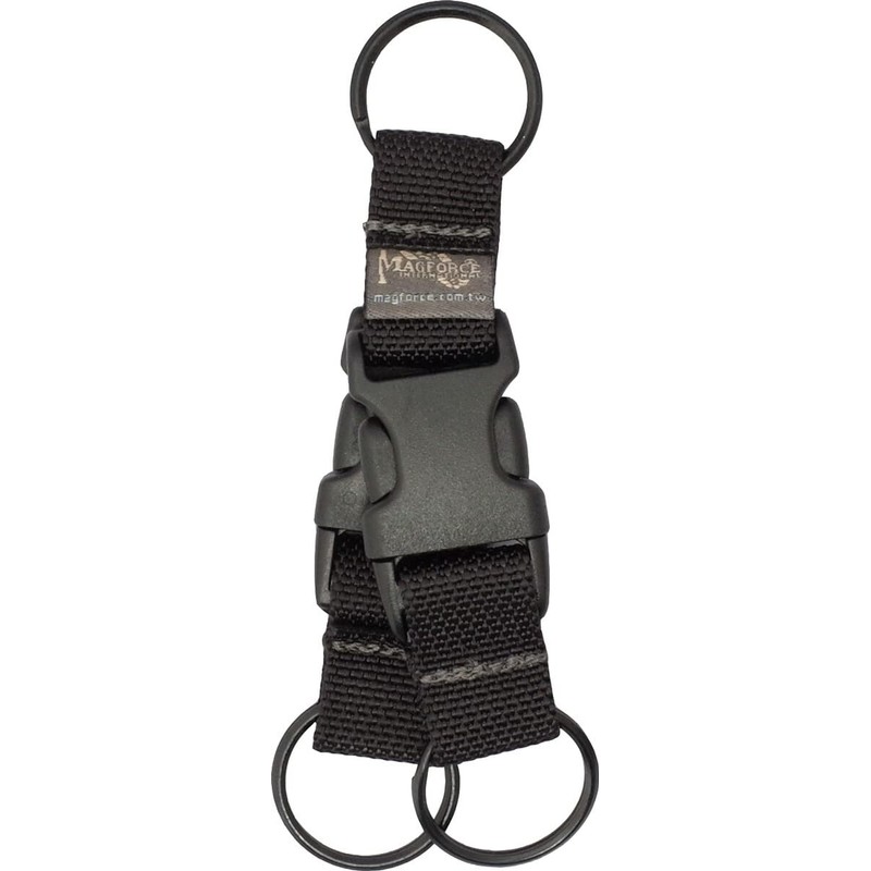 • Introducing the MAGFORCE MagForce MF-1716 Double Keyring Part Number: MF-1716 Double Key Ring with Removable Buckle Can be attached to your bag or attached to your belt loop. The material is made of durable 1000 denier nylon and finished with stubborn stitching, making it suitable for hard environments