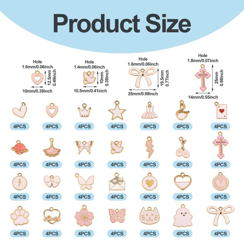 - Package Included: 112 pieces bracelet making charms, 28 styles, 4 pieces / style. About 10.5 - 25 mm long / 0.41 - 1 inches, 7 - 25 mm wide / 0.27 - 1 inches, 1 - 2.5 mm thick / 0.04 - 0.1 inches, hole: 1.4 - 2 mm