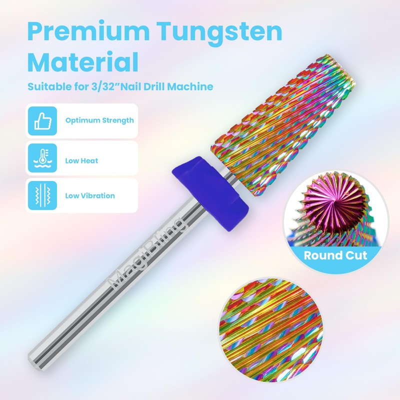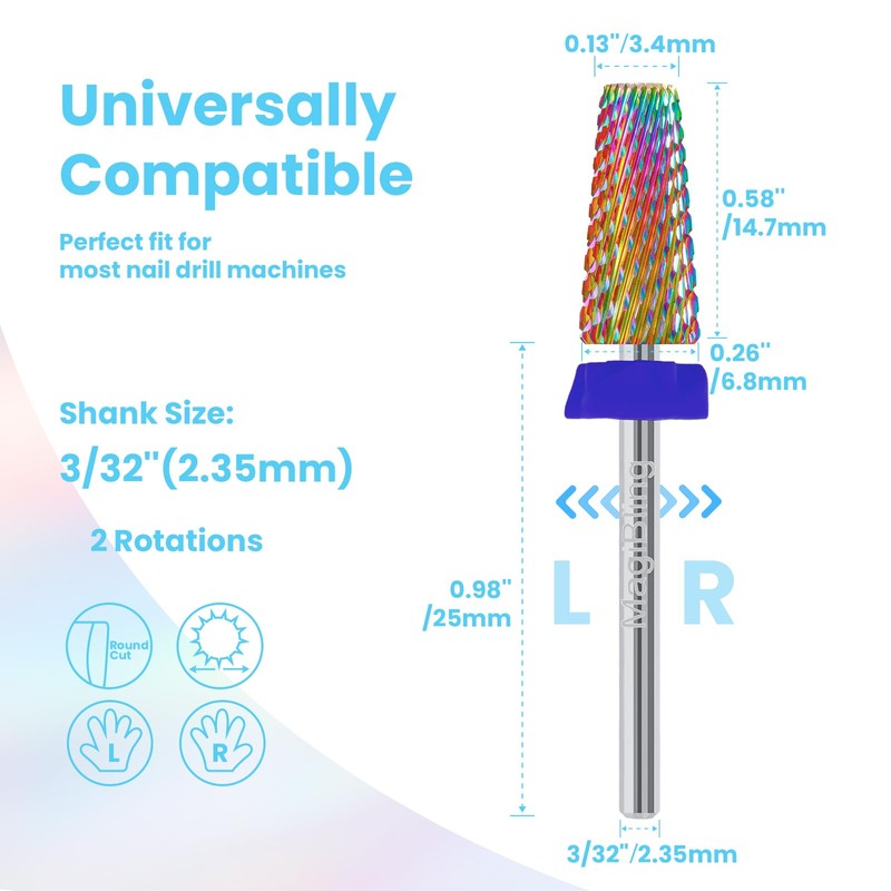 MagiBling 5in1 Tapered Barrel Nail Drill Bits, 3/32'' Safety Tungsten Carbide Bits, Two-way Rotation, Suitable for Manicure Pedicure Cuticle Gel Polishing, Technicians Bits, Grit: Medium.