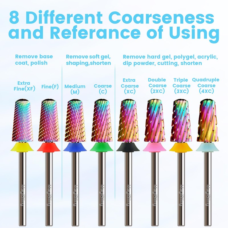 - Premium Tungsten Material: Made of high quality tungsten carbide, which hardness and strength are higher than others, making the nail drill bit resistant to high temperature, wear, corrosion and bending, which will provide durability for long lasting use. The bits can not be dropped. Not using the bits which was dropped on floor.
