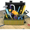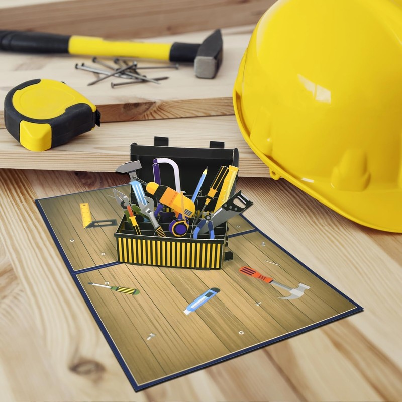 - 3D pop-up design for craftsmen: fascinating 3D pop-up design with an open tool box that shows realistic tools such as hammer, saw, screwdriver and drill. Perfect for DIY fans and craftsman gifts.