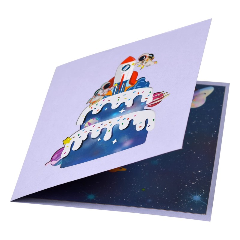 Magic Ants Outer Space Pop Up Geburtstagskarte, 3D Geburtstags Popup Karten, Pop Up Geburtstagskarten für Frauen und Männer (Geburtstagstorte – Raketen und Astronauten)