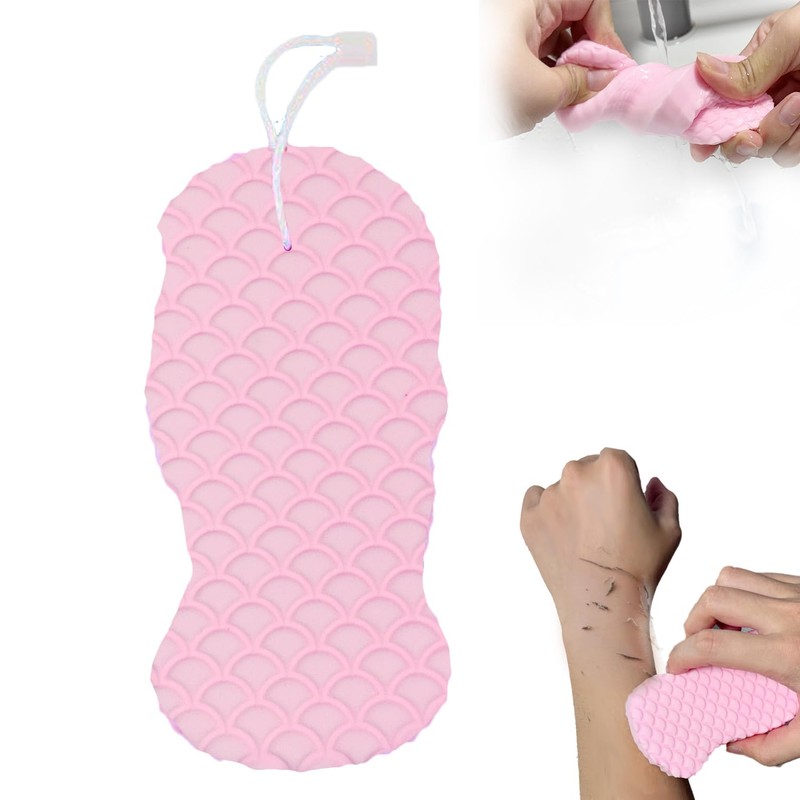 Magic Exfoliating Body Scrubber,3D Super Soft Exfoliating Bath Sponge,Removes Dead Skin and Impurities from Body-Skin Friendly and Reusable for Adults Children and Pregnant Women(Pink)