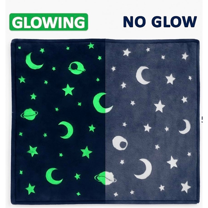 Magic Glow in the Dark Blanket, Stars and Moons Design, Super Soft Fleece, 152 x 127 cm, Washable