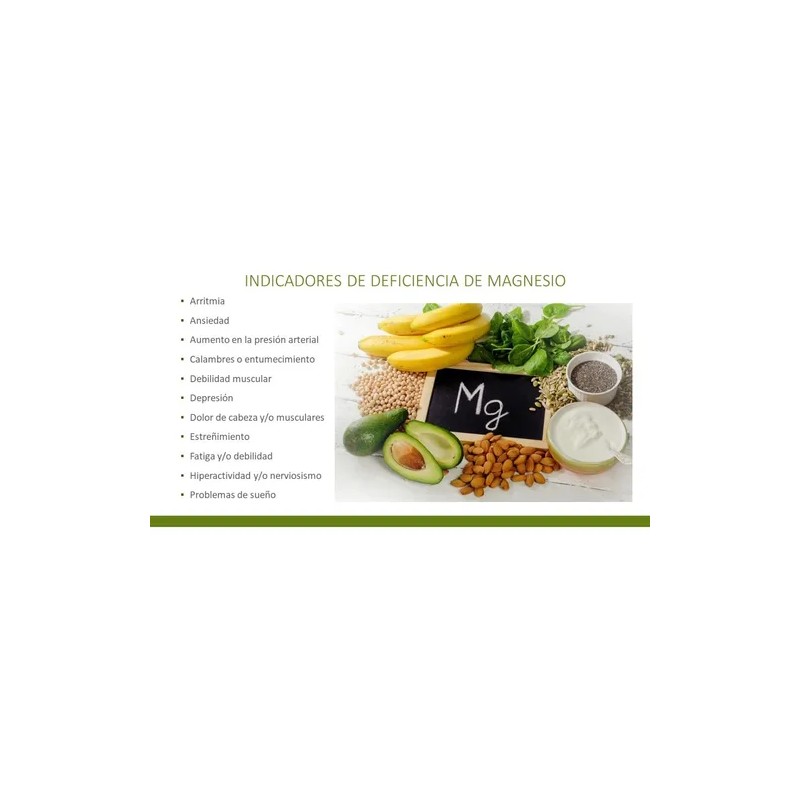 Contenido por cápsula: 400 mg de magnesio y 99 mg de potasio