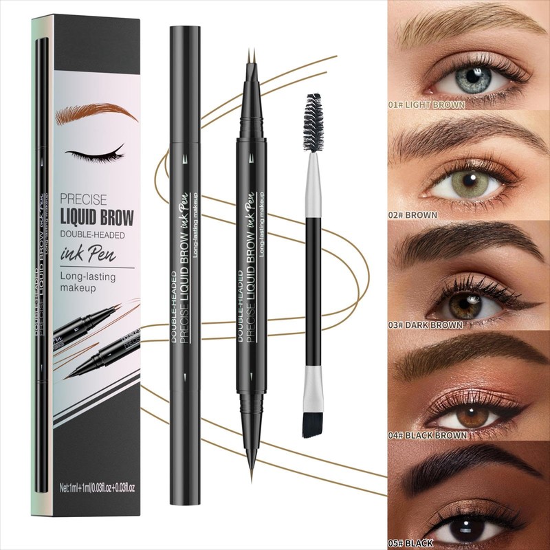 - 2 Tipped Waterproof Brow Pen With unique 2 fork tip head, you can draw the contour of eyebrow and continue to color inside evenly along brow-shape for last step, creating the vivid and nature eyebrows.