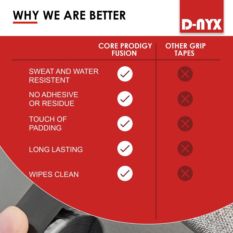 - Non-Slip, Lightly Cushioned Handle Grip - Choose Core Prodigy Fusion for situations requiring absolute slip resistance and a gentle shock-absorbing grip tape. Exceptionally Adaptable - Ideal for wrapping handles on sports equipment and various household applications. Whether you're at the gym or out on the field, secure a firm hold on your hockey gear.