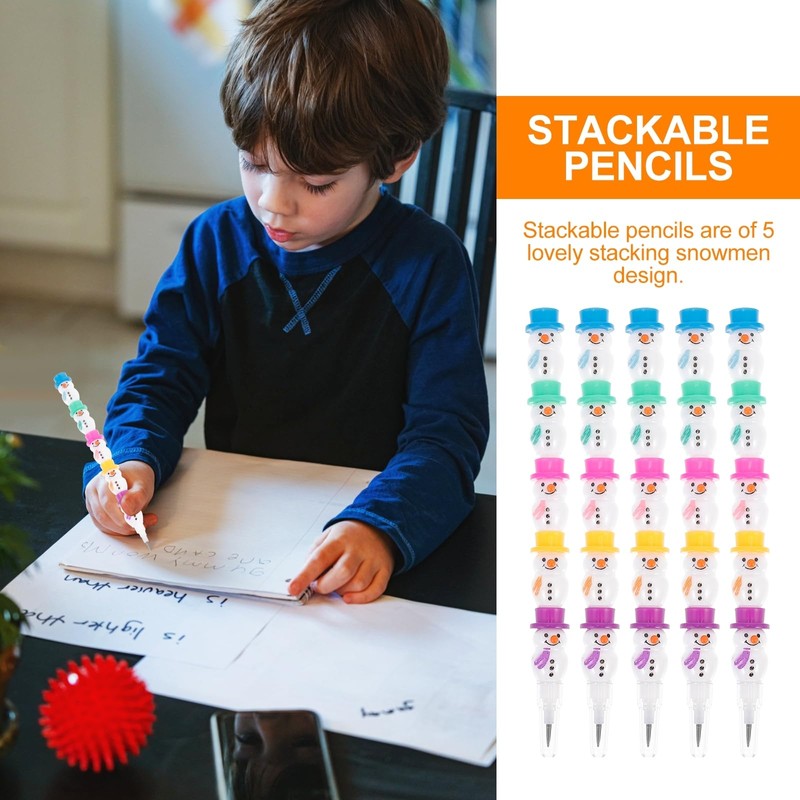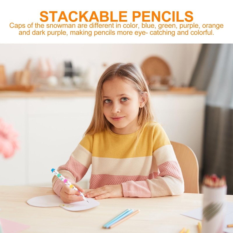 - Snowman stack the pencil: The shape of the pencil is a cute snowman pattern. Each little Snowman is stacked together. They wear different colors of hats, which look creative.