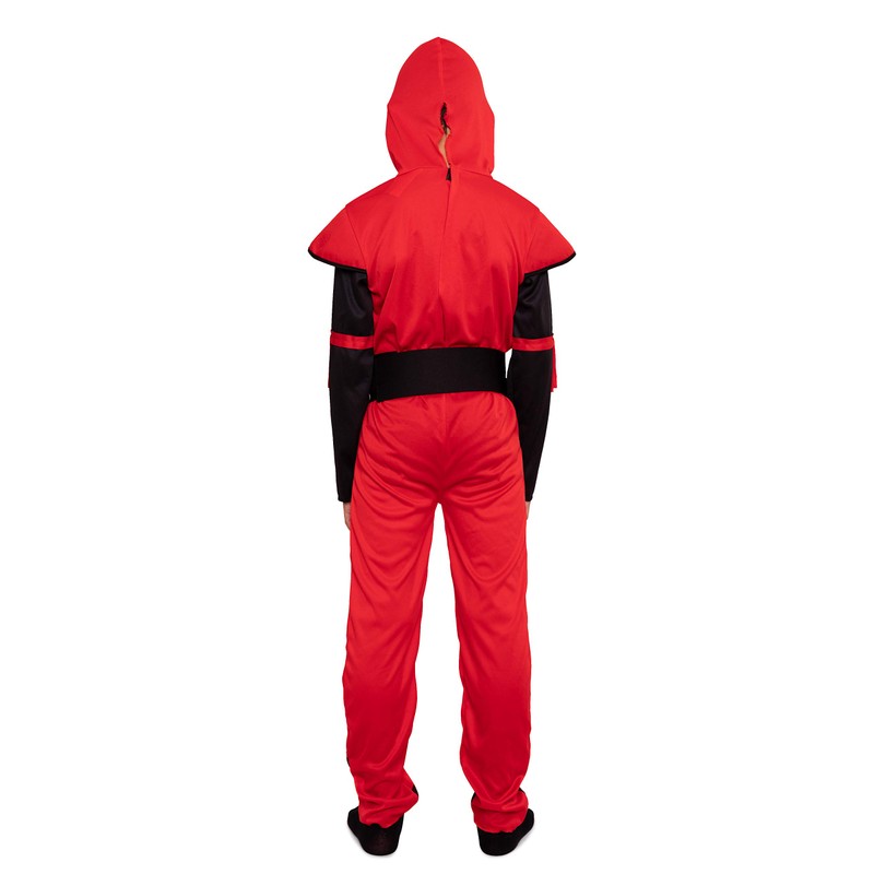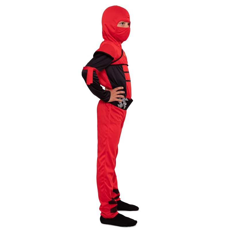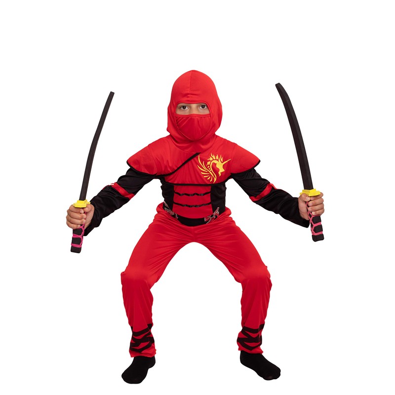 - The delivery includes a red onesie, as well as a belt a balaclava with matching mask. Shoes and swords are not included in the ninja costume. Available in four sizes: 92 - 104, 110 - 116, 122 - 128 and 134 - 140.