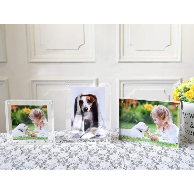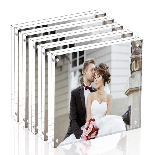 Magicool Premium Acrylic Photo Frame- Magnet Photo Frame -Double Sied Thick Desktop Frames (5x5 5 pack)