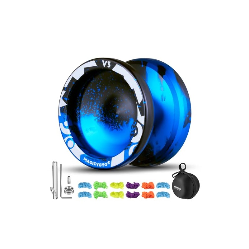 MAGICYOYO Professional Yoyo V3 Responsive Yoyo for Kids, Dual Purpose Yoyo with Non-Reactive Yoyo Mode, Metal Yoyo with Yoyo Bearing Pack + 12 Yoyo Strings + Yo yo Storage Bag (Black Blue)