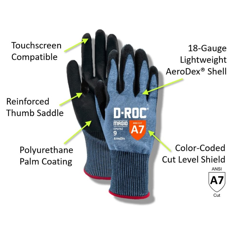 MAGID D-ROC AeroDex Extremely Lightweight Cut Resistant Work Gloves with Polyurethane Palm Coating Size 10/XL (1 Pair)