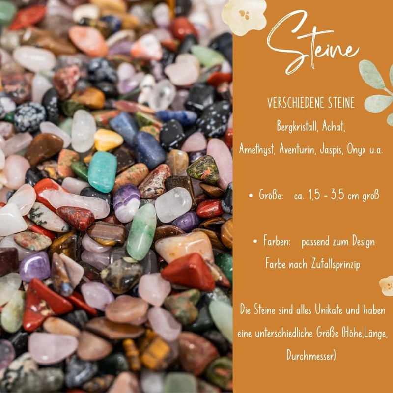 Natürliche Steine (z.B. Bergkristall, Achat, Amethyst, Aventurin, Jaspis)