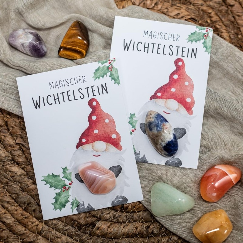 magischer Wichtelstein • Wichtelgeschenk Adventskalender Geschenk Weihnachten • Glücksbringer Kinder Erwachsene • Geschenkidee Karte • Glücksbringer fürs neue Jahr (1x natürlicher Stein)