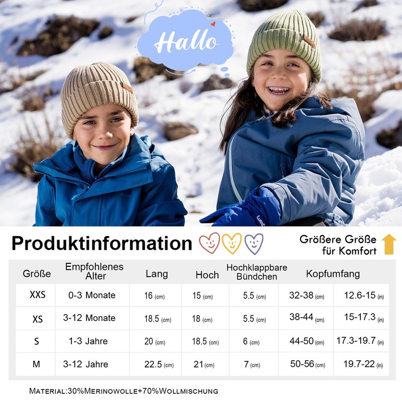 - Multiple sizes, elastic: the knitted hats are available in four sizes, XXS (0-6 months), XS (6-24 months), S (2-6 years), and M (6-16 years), and they are very elastic stretch. No matter what age children have, there are matching thermal hats.