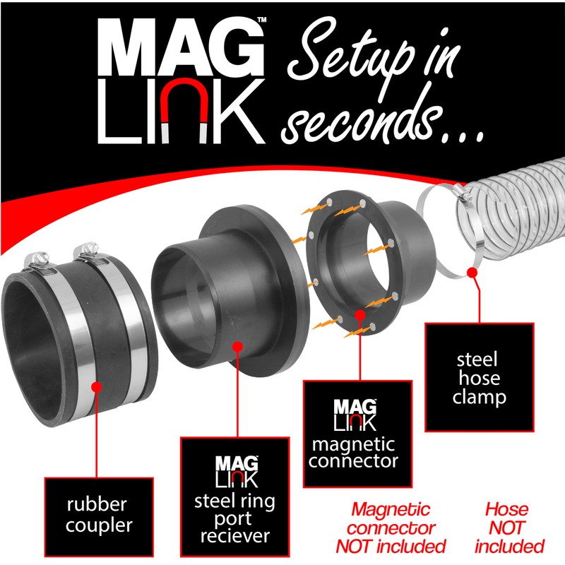 - Magnetic connectors (not included) along with metal ring receivers make the MagLink dust collection system perfect for all workshop environments. Keeping our workspace, clutter free and healthy is as important as it ever was.