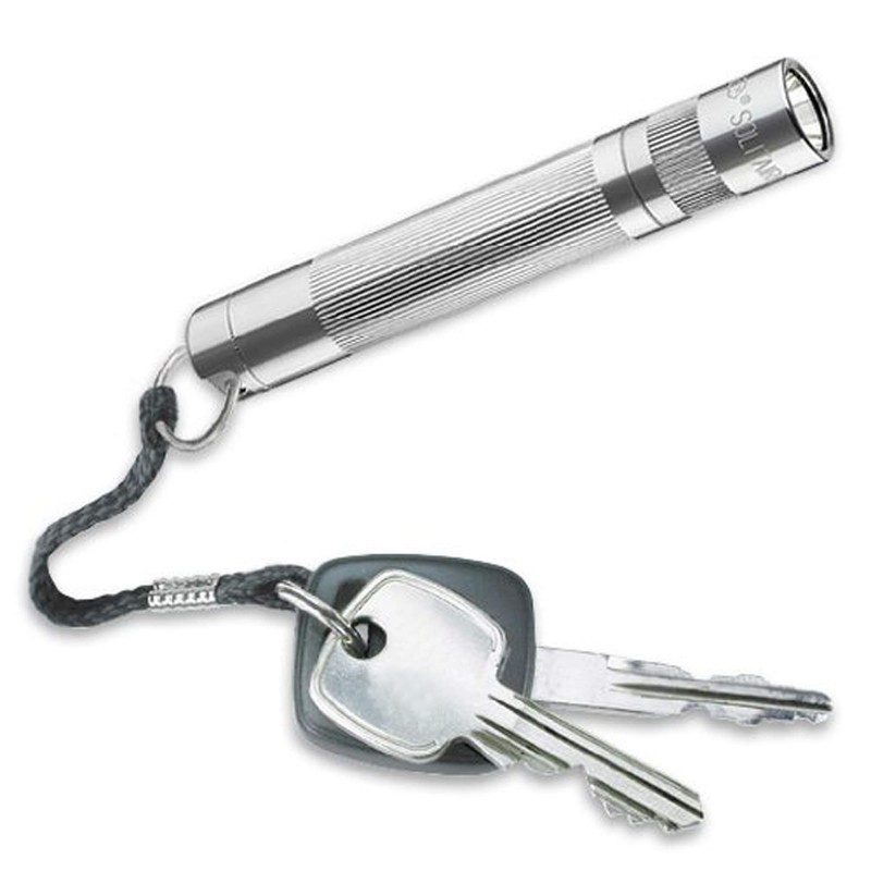 A keychain-size flashlight with big-light power the Silver 37-lumen Mag Lite Solitaire LED flashlight. It features the classic look of the company's original Solitaire flashlight introduced in 1988. And it works in the same simple way just twist the head to turn on, turn off and focus spot to flood. But thanks to a new, state-of-the-art LED light engine, you get something you just wouldn't expect to see coming out of a flashlight so small a blast of power that can light up an object at the far end of the parking lot 61 meters distant! the flashlight comes with one AAA battery (which should run the battery for about 1.5 hours) and a key lead.