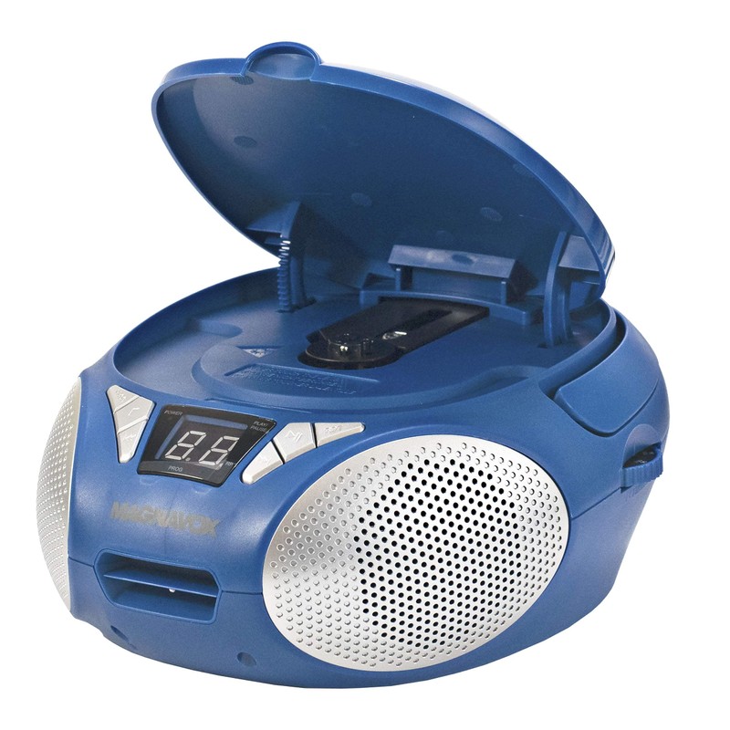 - KEY FEATURES: This portable CD boombox by Magnavox includes a top-loading CD player, LED Display, AM/FM Radio, 3.5mm aux port, and is CD-R/CD-RW compatible. This can be powered by an AC/DC adapter or 6 C batteries (not included).