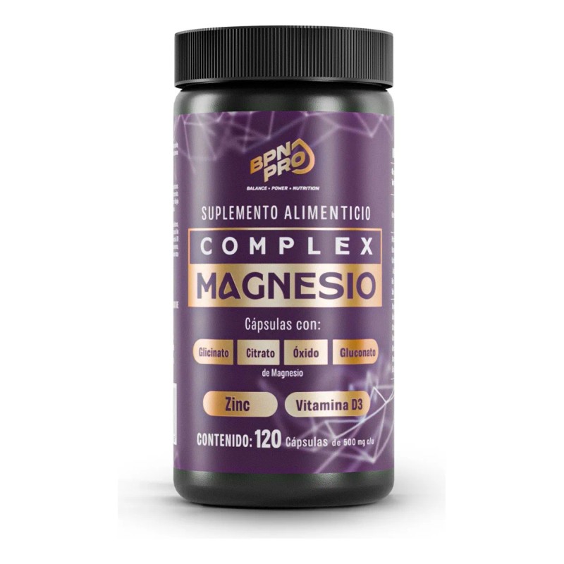 Magnesio Complex Citrato de Magnesio Oxido Gluconato de Magnesio Glicinato de Magnesio con Zinc Vitamina D3 BPN PRO 120 Cápsulas - Suplemento Completo, Ósea Inmunológica, Reducción de Estrés y Fatiga