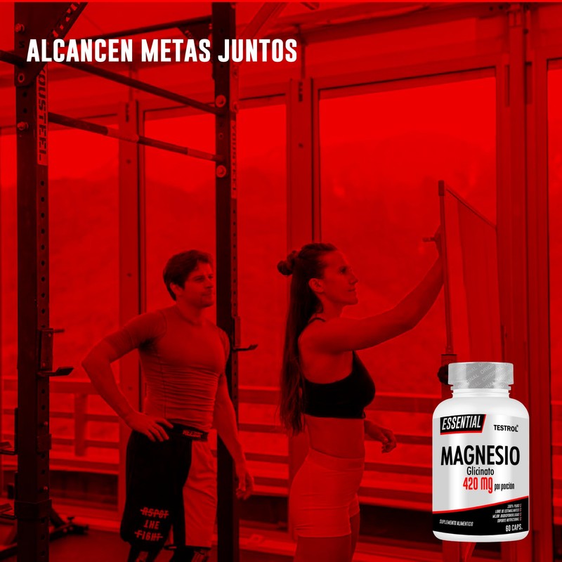 Magnesio Glicinato Essential. 420mg. Tu aliado para un bienestar óptimo. Suplemento de alta absorción. Regulación celular y equilibrio electrolítico. Testrol. Combo dúo 2 unidades de 60 cápsulas.