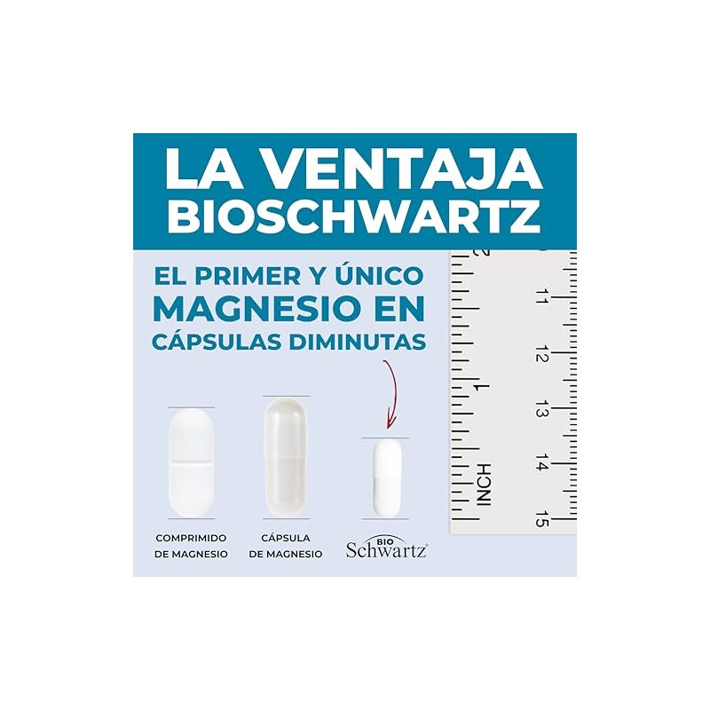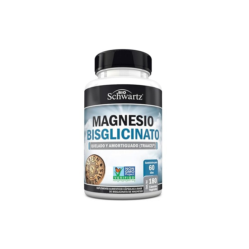 Acerca de este artículo Minicápsulas fáciles de tragar: BioSchwartz ha desarrollado un suplemento de magnesio bisglicinato puro en cápsulas pequeñas y fáciles de ingerir, formulado sin aglutinantes, rellenos ni aditivos químicos. Fórmula suave y sin efecto laxante: Esta fórmula vegana y vegetariana es bien tolerada, con cápsulas diseñadas para una absorción óptima y alta biodisponibilidad, sin causar efectos laxantes. Potente y con múltiples beneficios: El bisglicinato de magnesio es una forma comúnmente utilizada como parte de una dieta balanceada, con uso tradicional en el apoyo al funcionamiento normal del cuerpo. Alta biodisponibilidad: Formulado con Albion TRAACS, una forma patentada de magnesio biodisponible que garantiza una máxima absorción. La diferencia de calidad de BioSchwartz: Nuestros suplementos alimenticios de calidad profesional se fabrican en EE. con ingredientes de la mejor calidad procedentes de todo el mundo, siguiendo estrictas pautas de las BPM para garantizar que se obtengan los mayores beneficios.