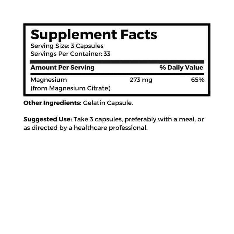 Dr. Clark Store Magnesium Citrate – 91mg, 100 Capsules, Supports Energy Production, Enzyme Function & Nervous System Health
