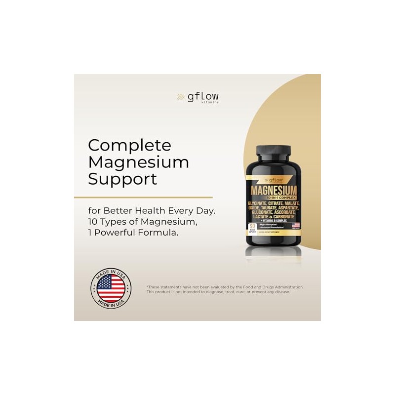 Magnesium Complex Supplement - 10 Active Forms, Glycinate, Citrate, Malate, Oxide, Taurate, Aspartate, Gluconate, Ascorbate, Lactate, Carbonate, Plus