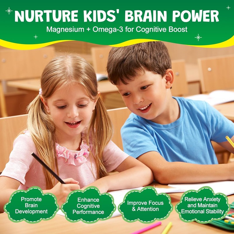 - NEURO-IMMUNE VITALITY COMPLEX: We kids magnesium glycinate gummies added Vitamins C + D3 activate immune cell defenses against seasonal threats. Omega-3 fuels synaptic plasticity for sharper focus. This multi-action shield supports resilient brains and bodies during critical growth phases. In addition, Vitamins D3 collaborate to boost immune system, while Vitamins B6 & B12 further support energy metabolism, boosting kids’ vitality & reducing fatigue