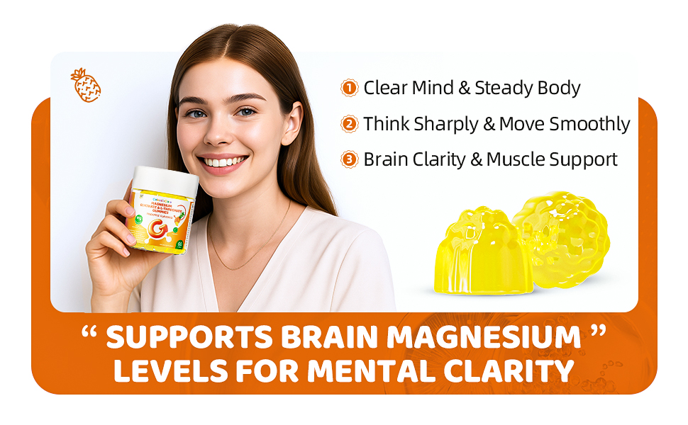 Magnesium Glycinate & L-Threonate Gummies – High Absorption Complex for Muscle, Nerve, Sleep, Relaxation, Bone & Immune Support – Sugar-Free, Vegan, Non-GMO – 60 Count