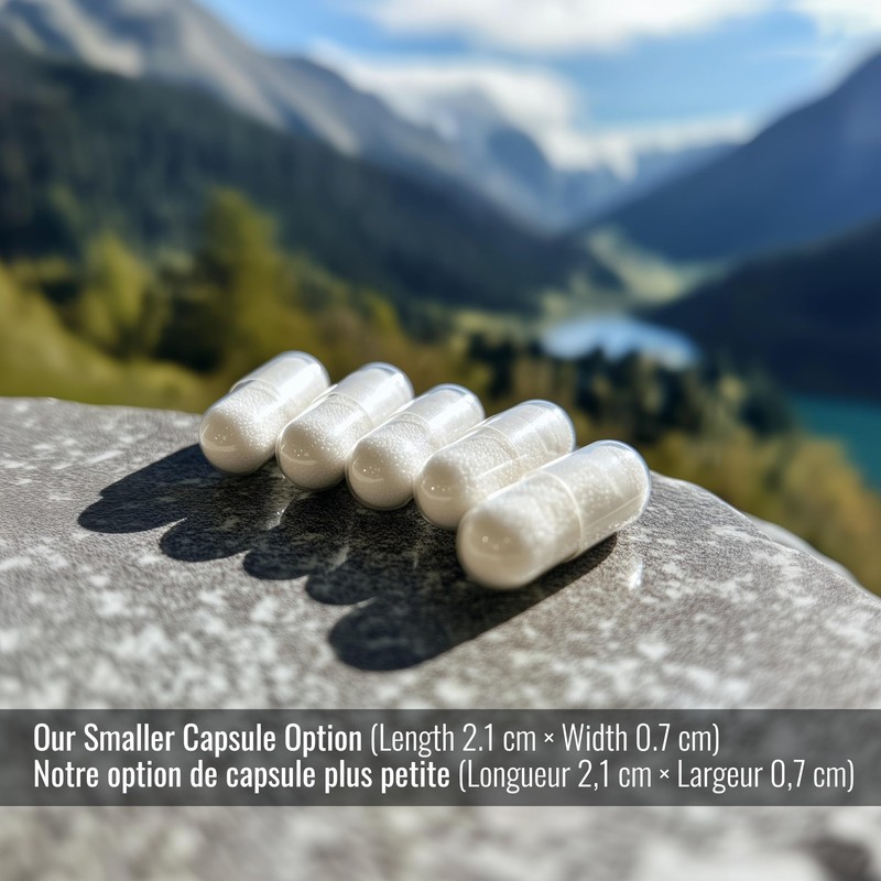 - Smaller Capsules: This is our smaller capsule size option. Each easy-to-swallow capsule fits 100 mg of elemental (usable) magnesium from non-buffered (100% pure) magnesium glycinate. A once-daily adult serving of up to four capsules contains 400 mg (4 x 100 mg). It's pure magnesium in a capsule with absolutely no additives.