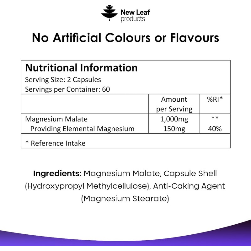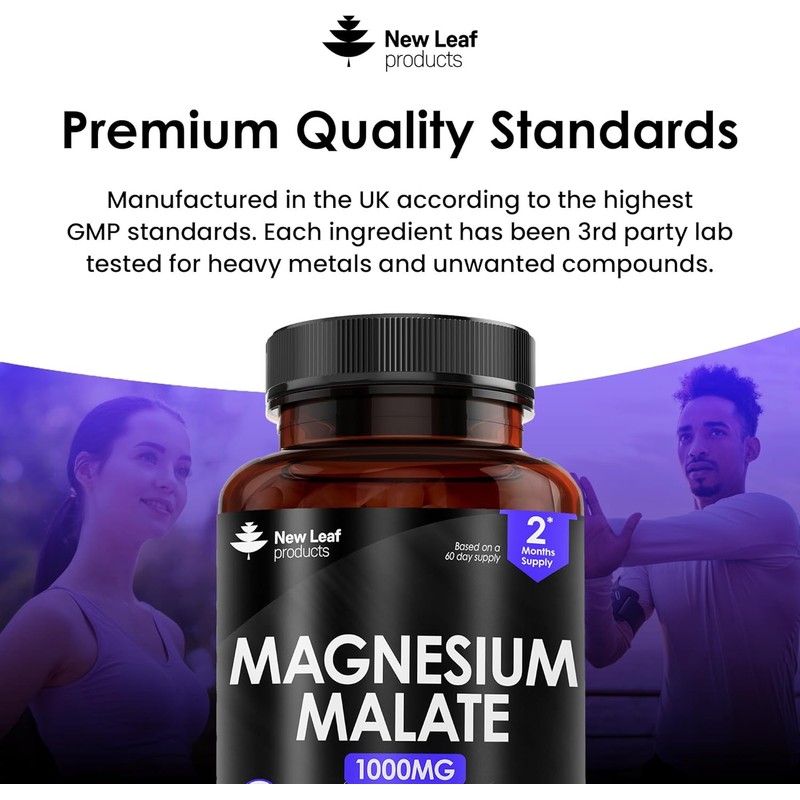 SUPPORT ENERGY, MUSCLE, AND NERVOUS SYSTEM FUNCTION – Known for its high bioavailability and superior absorption, Magnesium Malate is a powerful nutrient that supports key body functions, from energy production to muscle health. New Leafs' formula helps promote balanced nervous system function, supporting your overall vitality and wellness.