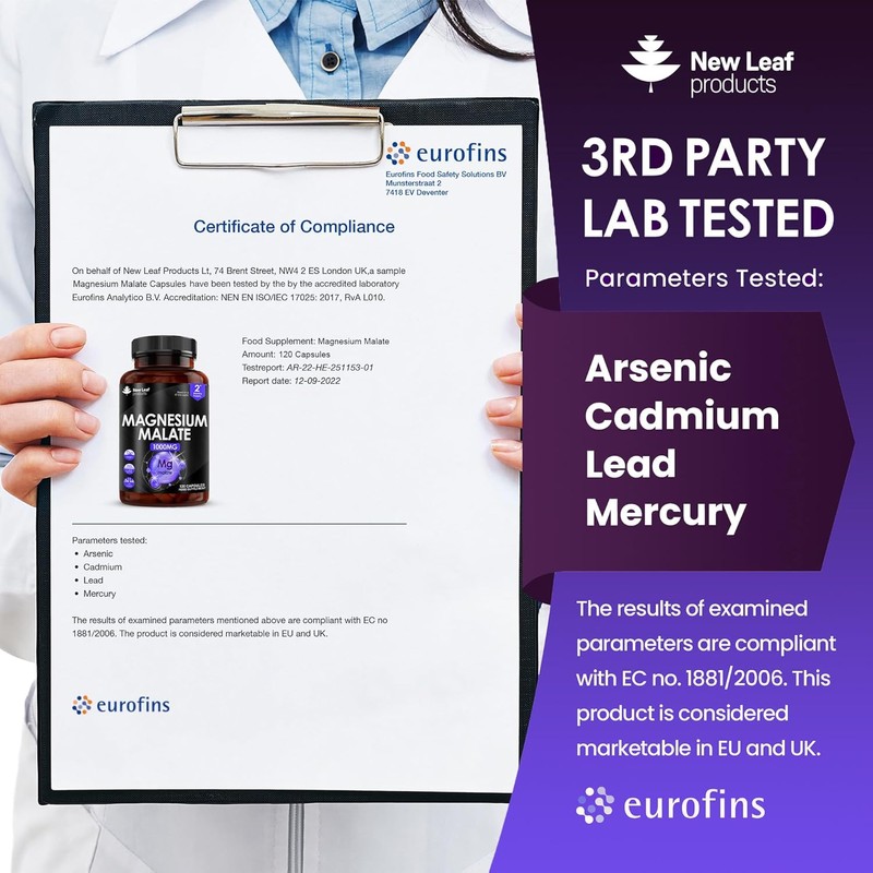 BOOST YOUR WELLNESS WITH EASE – Experience the transformative benefits of New Leafs' Magnesium Malate Capsules. Each bottle contains 120 capsules, providing a two-month supply, with 1000mg of premium Magnesium Malate per serving. Designed for easy daily use, these capsules are an essential addition to your wellness routine, ensuring comprehensive support for optimal health.