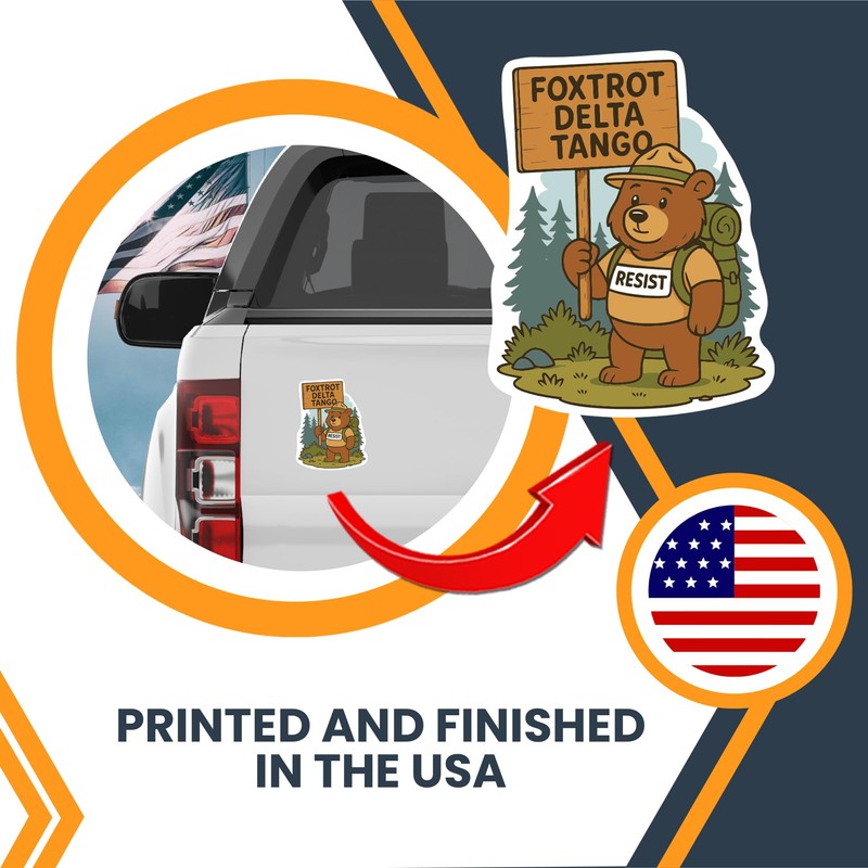 Magnet Me Up Resist Foxtrot Delta Tango Magnet- 5x4 Inch, Anti-Trump Magnet with Bear Graphic, Political Protest Gift, Funny FDT Bumper Fridge Magnetic Decal, Liberal Democrat Decor, Made in USA