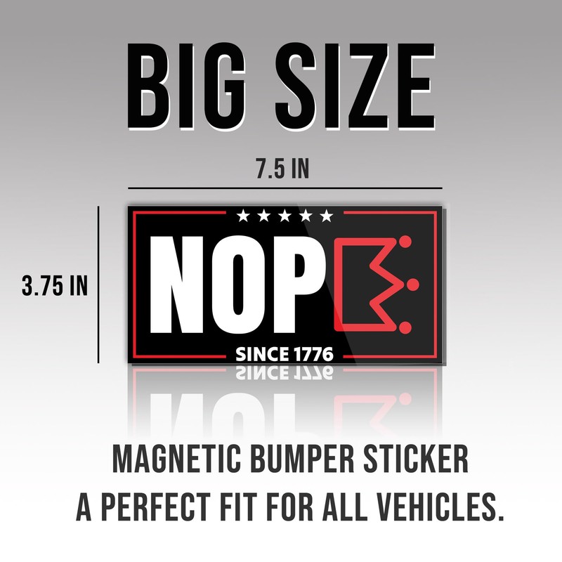 - Easy to Apply and Remove: With a strong magnetic backing, NOPE No Kings in America Since 1776 magnetic bumper stickers can be easily applied and removed without leaving any residue or damage to your vehicle's paint, making them perfect for temporary or changing messages.