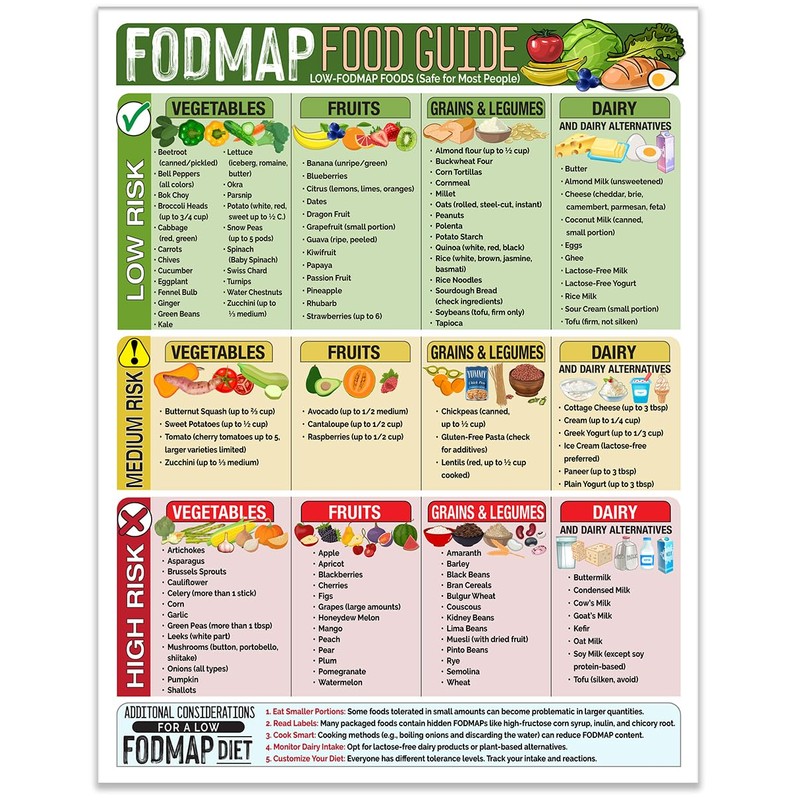 Magnetic 8.5x11 FODMAP Food Guide – IBS-Friendly Diet Poster & Chart, Safe Fo...