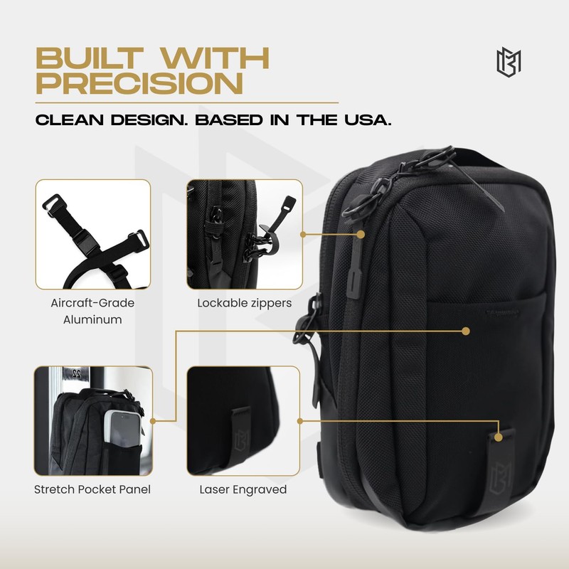 Magnetic Bag Company - Black Crossbody Bag Sling Chest Bag for Men and Women | Magnetic Gym & Travel Bag for Work, Sports, Keep Items Clean