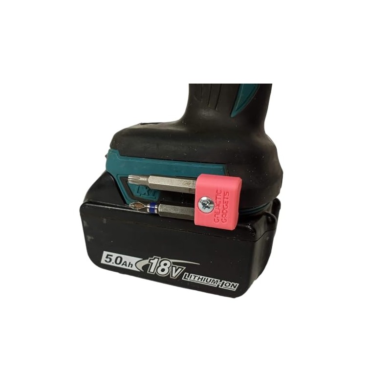 Magnetic Bit Holder for Makita 18V or Ryobi Drill/Driver, Side Mounted, Strong Magnets, Low Profile Design - Galactic Gadgets (Pink)