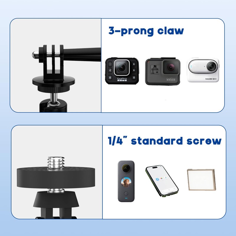 - Experience ultimate versatility with dual-compatible design, integrating GoPro's 3-prong quick-release structure and a universal 1/4"-20 threaded head. Perfect for attaching to GoPro, cameras, lights, or accessories, this magnetic mount for GoPro ensures you're always ready to capture the moment