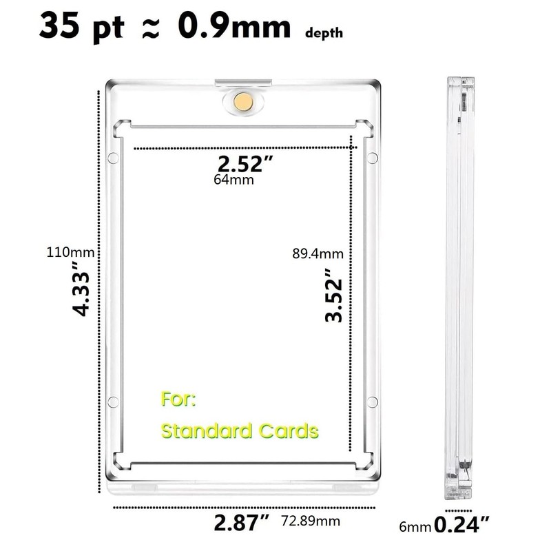 - Standard Card Size: The Magnetic Card Holder fits the standard trading card size (2.5"x 3.5") up to 35-point thickness. The trading card holder is suitable for baseball cards, basketball cards, football cards, sports cards,standard card and MORE. Wonderful for kids' birthday presents, homework rewards, or Christmas stocking stuffers.