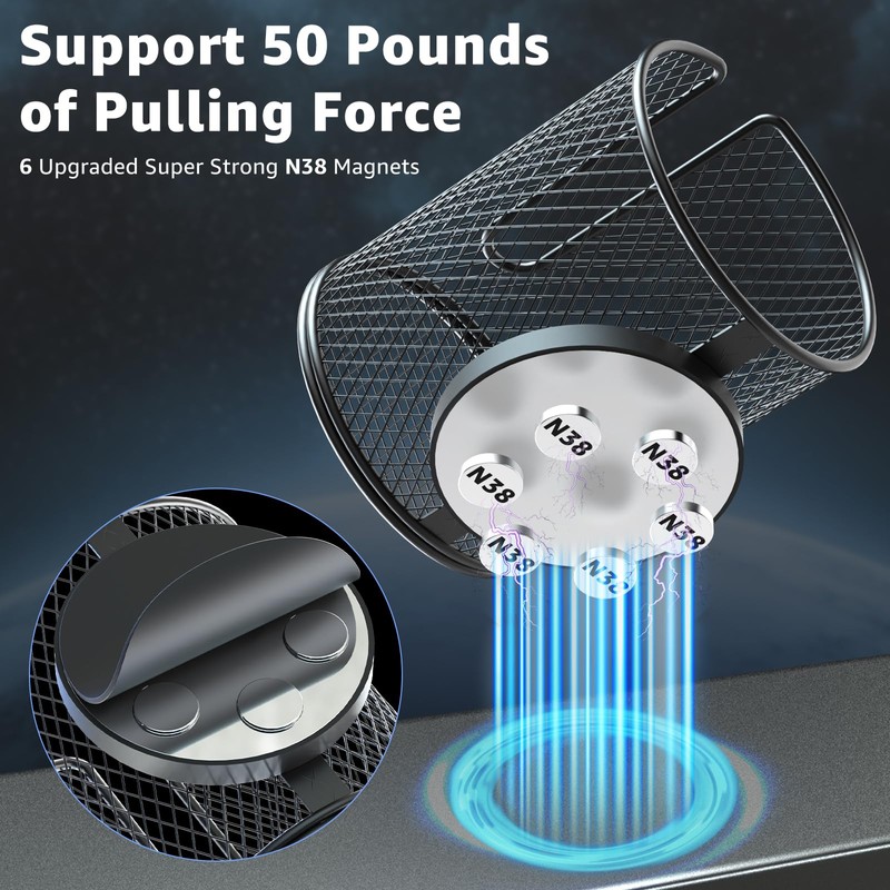 - ใ๐๐จ๐ฐ๐๐ซ๐๐ฎ๐ฅ ๐๐๐ ๐ง๐๐ญ๐ข๐ ๐๐๐ฌ๐ใ: Built-in 6 upgraded N38 industrial magnets can withstand a pulling force of 50 pounds. Our magnetic cup holder securely attaches to any ferrous metal surface, allowing you to go hands-free and keep your drink within reach so you can stay hydrated while working in your workshop, garage, storage area, or outdoors.