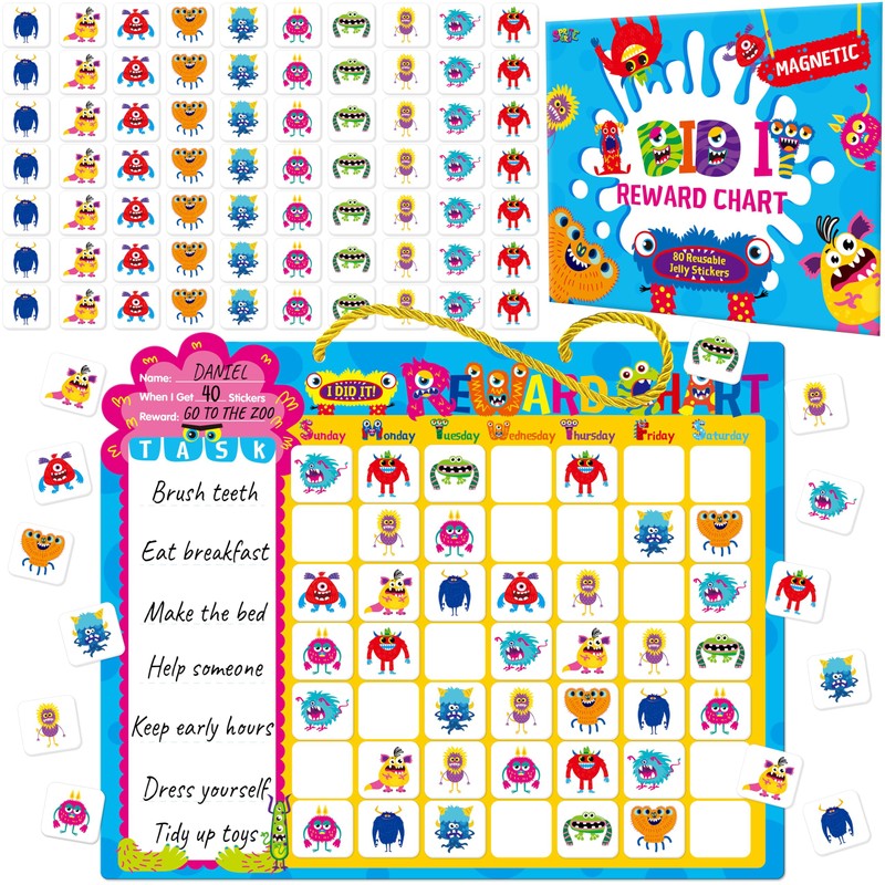 - Value Pack: Super package includes all the things you need. It comes with one big magnetic “I did it” reward chart and 80 reward jelly stickers. It's ideal for establishing daily routines, encouraging positive behaviors, and even supporting potty training milestones.