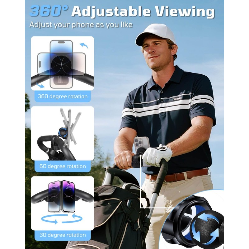 - Rotation 360 Degree: Golf magsafe phone holder for clicgear built with 360-degree rotating ball gives you the best viewing angle and allows you to switch to any direction quickly. Easily record your score and golf GPS app