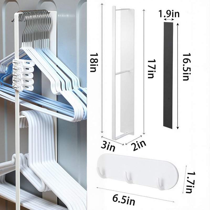 - 【Magnetic Hanger Organizer】Latest 3 layer hanger organizer can store up to 50 hangers! Space saving clothes hanger stand will free up your closet and laundry room space, keep your hangers neatly stacked. No more hanger mess! Size: 3 x 2 x 18 inches (L x W x H), this Multi-Use Magnetic shelves can hung different hanger, towels, Clips and headbands.