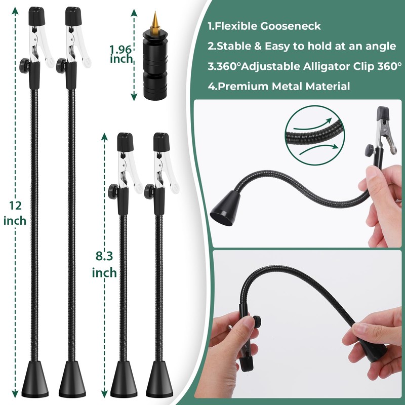 - Flexible Metal Gooseneck: Soldering hands with 4 adjustable metal gooseneck arms, including two 12-inch and two 8.3-inch arms), the metal gooseneck can be easily positioned, stable and easy to hold at an angle without bouncing. The bottom of the gooseneck comes with a strong magnetic base that has a powerful attraction to the metal base. It ensures that your project stays put, thus guaranteeing accurate and stable work.