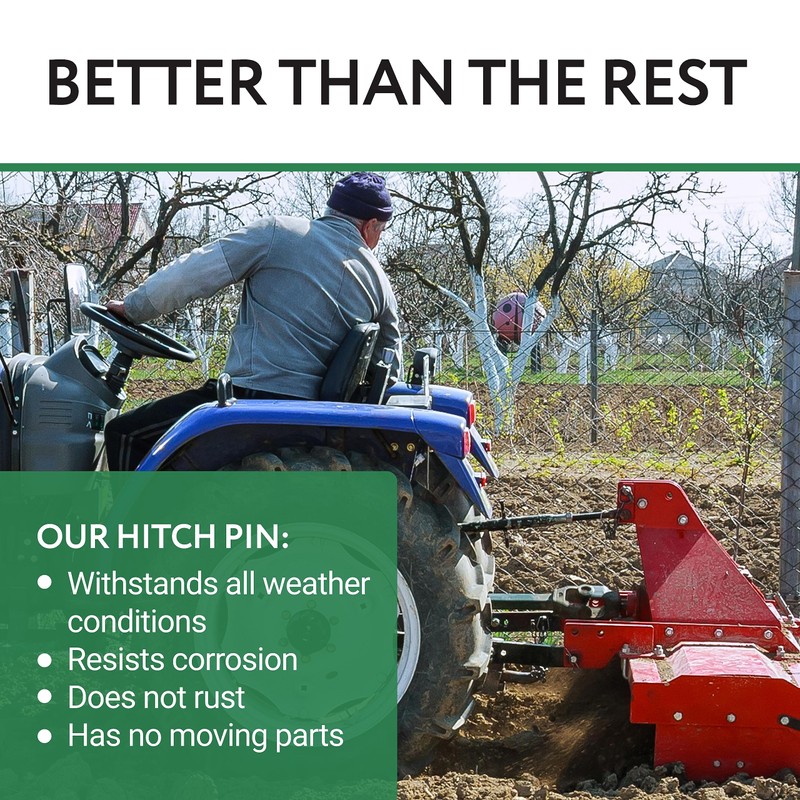 - Compatible With Most Lawn And Tow-Behind Attachments: The perfect tow hitch pin for hitching rollers, spreaders, sweepers, tillers and utility carts, lawn tractors and ATV's.