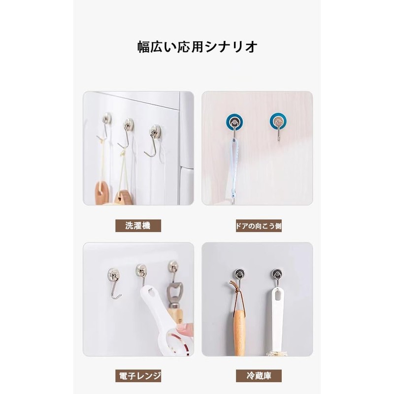 Features: Permanent magnetic force: Uses heavy duty magnets, which can hold up to many times the magnetic force compared to ordinary magnetic hooks. This product can bear a vertical load of 22.0 lbs (10 kg), and a horizontal load capacity of 6.6 lbs Please note that depending on the thickness of the mounting surface and the situation, the vertical 10kg and horizontal 3kg load may not be accepted. Rust and Corrosion Resistant - Even if used for a long time outdoors or bathroom, it has a smooth surface and beautiful brightness while preventing rust and corrosion. More Convenient 4 Magnetic Hooks, Perfect for Kitchen Storage (Pot, Cutting Board, Tableware), Refrigerator, Bar, Bathroom, Sleeping, Kitchen, Wall Hanging Storage Package Contents: 4 x Magnetic Hooks,