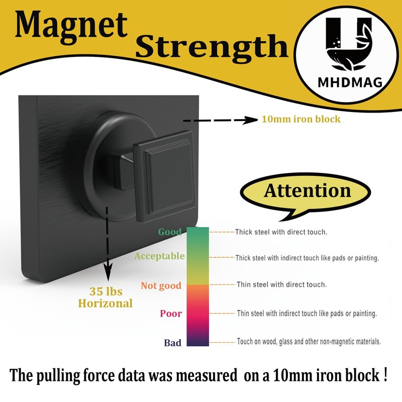 - 【Quality Assurance】Plated with protective coatings, our hooks feature corrosion resistance and rust prevention. Please note that the magnet strength is affected by the metal thickness and smooth of the attached items or high-temperature environment or acid-base environment.