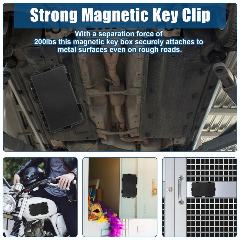 • Upgraded High Quality: The magnetic key holders for hiding keys is made of high quality material, waterproof, windproof and rainproof. This key holder for car can withstand most of bad weather, it passed the comprehensive test in snow, rain, mud and other environments. Note that this outdoor key hider is splash-proof but not immersion-proof, please do not immerse this outdoor key lock box in water for a long time